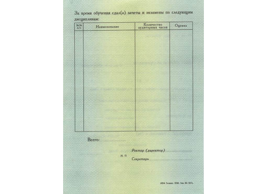 Покупая диплом о профессиональной переподготовке 1996 - 2012 гг. в Компании «EXPRESS-Дипломы», вы можете быть уверены в его достоверности и соответствии государственным нормам и требованиям. Мы гарантируем, что наши Диплом о профессиональной переподготовке 1996 - 2012 гг. заполняются по учебному плану нужного учебного заведения на нужный год окончания, делается всё по уставу.