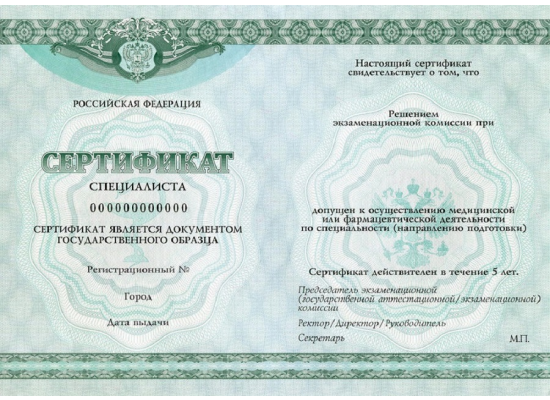 Сэкономьте время и получите документы официального образования: заказывайте Сертификат специалиста 2016 - 2025 гг. у лидера в отрасли. Компания «EXPRESS-Дипломы» предлагаем вам уникальную возможность приобрести Сертификат специалиста 2016 - 2025 гг. по выгодной цене, полностью соответствующие оригиналам. Документы создаются на бланке Гознака с подлинными печатями и необходимыми подписями и обладают всеми мерами защиты: