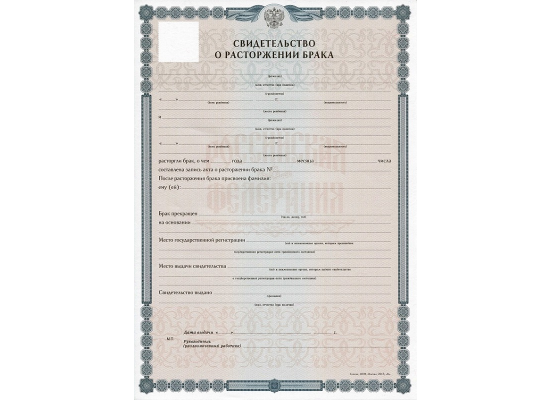 Свидетельство о расторжении брака 2019 - 2025 гг.